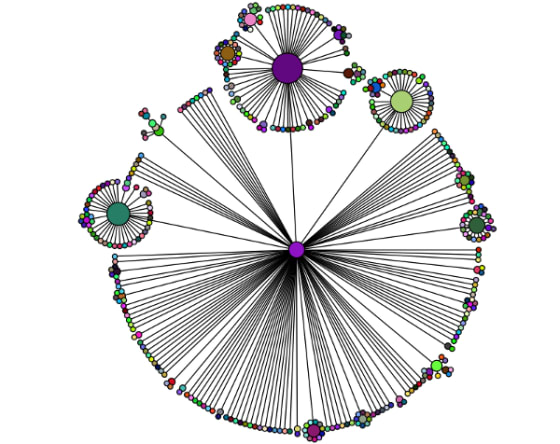 This sample graph displayed above shows how social media spreads from the social media user in the middle out to his circles and then to other circles. Users can view their own graphs at any time to see how their social media messages on Proposition 30 are spreading.