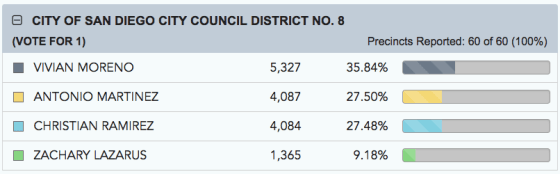 Ramirez told IVN San Diego, "Everything is on the table on our end. We're concerned about the policies in place in the county, particularly where poll locations are established, there were some irregularities that we saw in the process. We're evaluating all of our options, closely monitoring the good folks at the ROV are doing, at this point we're very interested in making sure single vote in counted in District 8 and are not discarding the possibility of a recount if we believe the situation warrants."