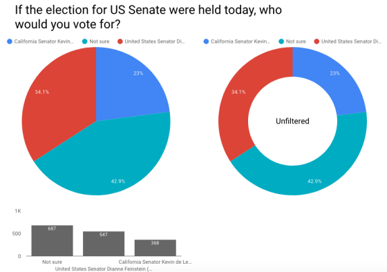 And then there's the independent voters to consider. 25 percent of registered voters in California are not affiliated with any party. A quarter of them say they are undecided between Feinstein and de León and plan not to vote for either in November, while 52 percent of Republican voters say they're sitting out the California senate race as well. It was voters like these who were undecided until the last minute that handed Donald Trump his surprise win in 2016.