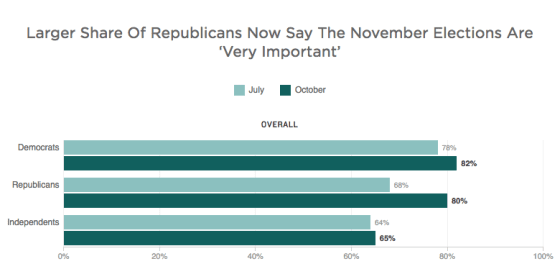 "Just over a month away from critical elections across the country, the wide Democratic enthusiasm advantage that has defined the 2018 campaign up to this point has disappeared, according to a new NPR/PBS NewsHour/Marist poll."
